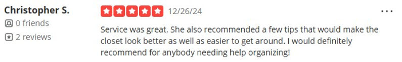 I absolutely love helping clients and it makes it so much better hearing how satisfied they are in their new organized spaces.